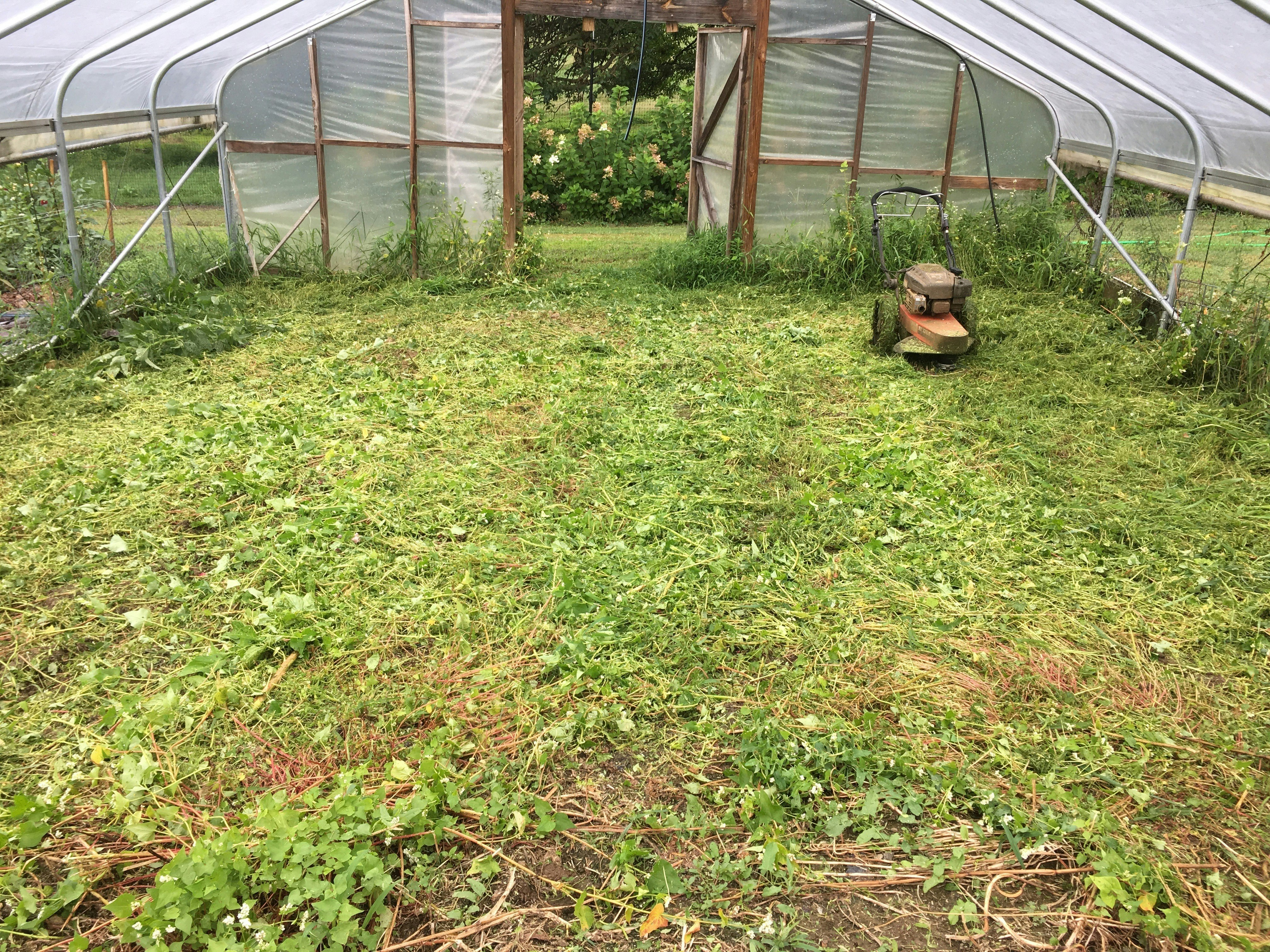 If I were trying to do this process during cooler months, I would have used a mustard and daikon mix. The added benefit of those two would be that they have biofumigant properties that would help with suppressing disease build up. If disease becomes an issue again in my hoop house, I will cover cropped it during some cooler months to get at least one round of mustard in there. But since revitalizing my hoop house soils during the 2019 summer, the disease issues seem to be a lot better.