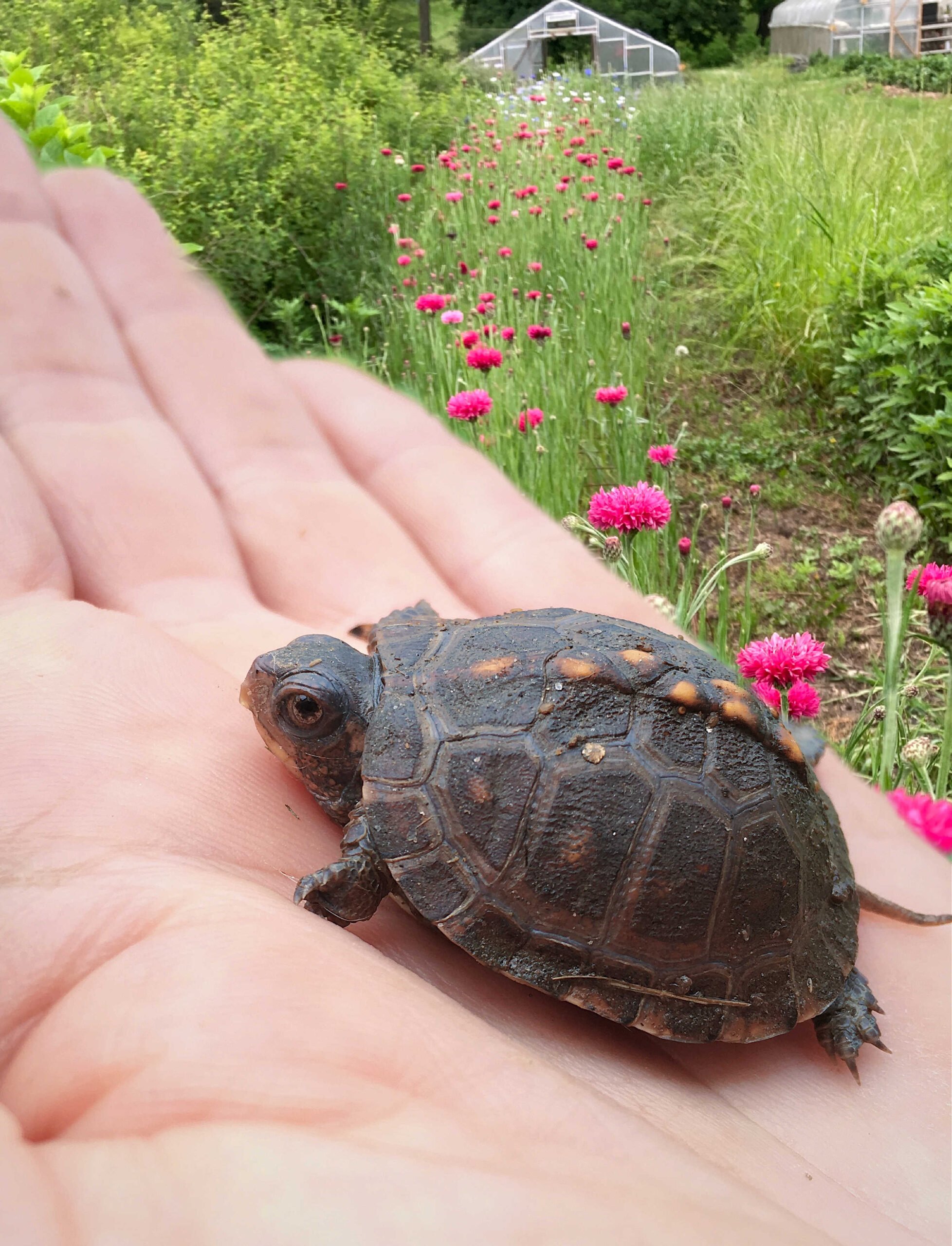 Our exuberant flower fields play host to countless birds, bees, butterflies, lady bugs, turtles, toads, and many four-legged furry friends. Large plantings of perennials and shrubs, especially native varieties, provide unusual design ingredients and boost biodiversity. The fields are regeneratively-managed, meaning lots of compost and natural fertilizers like kelp and cover crops are used to nourish the plants and the soil. No toxic chemicals are ever applied anywhere in the fields or growing houses.