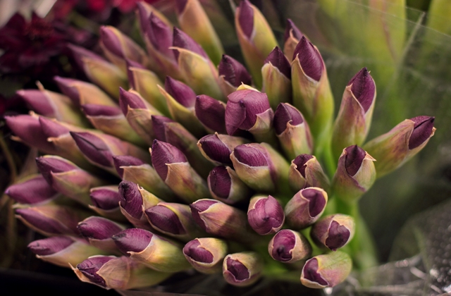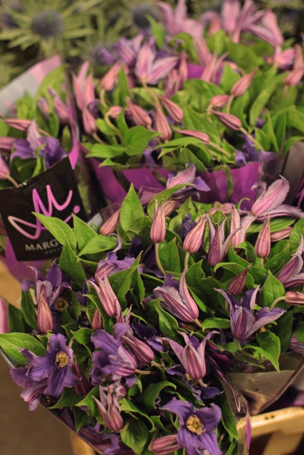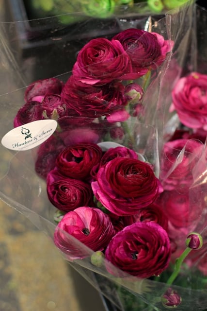 Secondly, I had an eye-opener about wholesale pricing for specialty crops. Granted, NYC is a special case with a huge demand for unique floral material and an ever-growing “Brooklyn flower mafia” scrambling to buy it. But still, it surprised me. Two-fifty a stem for standard ranunculus grown in NJ, identical to what I grow. One special variety of giant “peony” ranunculus from Japan (that really is freakishly the size of a large full peony) sells for 25 bucks a stem! Specialty parrot tulips were two or three dollars a stem. Flowering branches were 65-75 dollars a bundle. I was afraid to ask what that bunch of smoky purple iris would set me back. Remember, these are wholesale prices!! If you follow the traditional florist model of marking-up, retail for a standard ranunculus would be over eight dollars! But everything I saw was just breathtakingly beautiful. For just a few hours, I wished I wasn’t so darn determined to use only flowers I grow myself. I could have packed the van to the brim for the ride back to Philly!