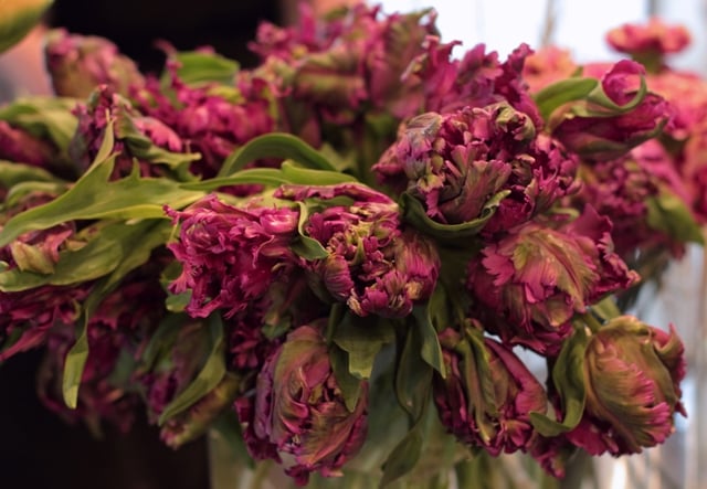 It was hard to keep up and take everything in as she shopped at G Page and the Dutch importers for parrot tulips, jasmine, ranunculus, Icelandic poppies, muscari, fritillaria, and hellebores. I snapped a few hurried Instagram photos so I knew it wasn’t just a dream. I loved that she chose nearly all seasonal flowers and wasn’t tempted by anything too terribly exotic. I could have absolutely grown pretty much everything she chose, except for the seeded eucalyptus and the jasmine vine.